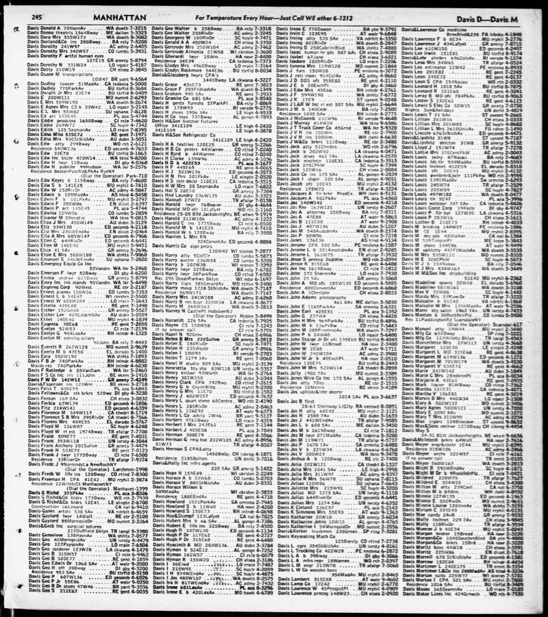 Leo Davis in Manhattan Telephone Directory (Page 247)