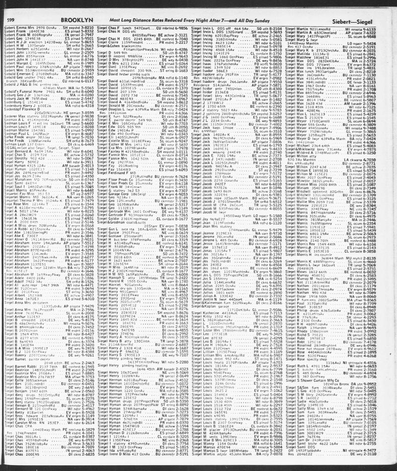 Herman Siegel in Brooklyn Telephone Directory (Page 601)